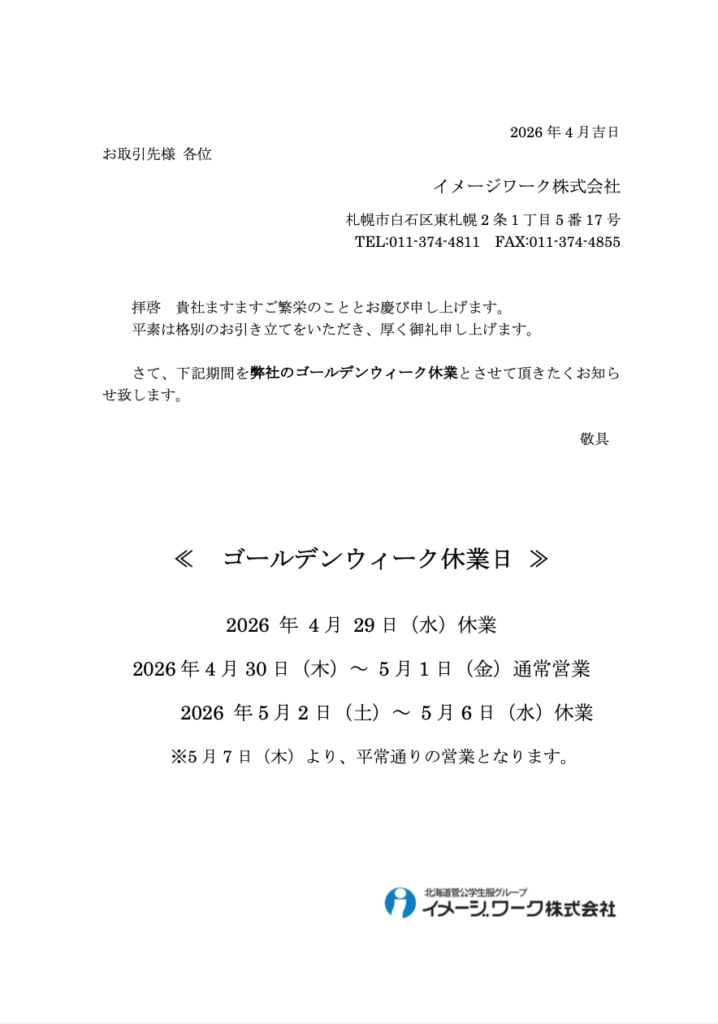 ゴールデンウィーク休業のお知らせ
